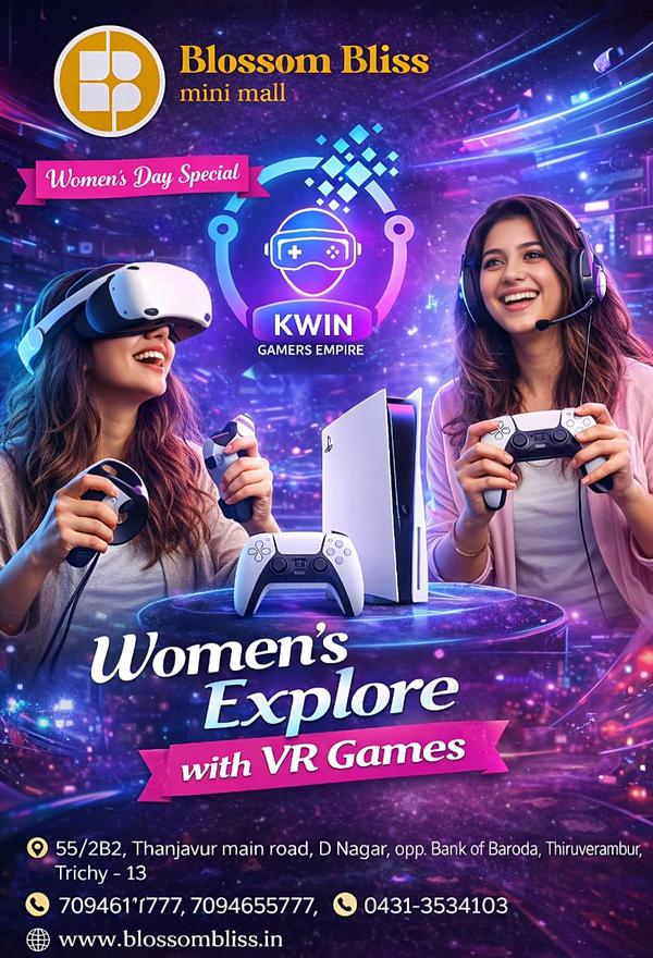 Blossom BlissBlossom Bliss is Trichy’s newest destination for fun, entertainment, and family experiences under one roof. Designed as a modern lifestyle and entertainment mall, Blossom Bliss spreads across three spacious floors, with each floor offering over 5,000+ sq. ft. of thoughtfully curated spaces. At Blossom Bliss, we bring together excitement, creativity, and relaxation for visitors of all age groups. From cutting-edge VR games that immerse you in thrilling virtual worlds, to console gaming zones for casual and competitive gamers, every corner is crafted to deliver unforgettable moments. Adding a refreshing touch to the experience, our nursery section offers a peaceful green space where nature meets lifestyle—perfect for plant lovers and families seeking a calm, refreshing environment within the city. Our vision is to create a vibrant community space where families, friends, and gamers can come together to explore, play, relax, and make memories. Whether you’re looking for high-energy entertainment, interactive gaming, or a serene escape, Blossom Bliss promises an experience that goes beyond shopping. Located in the heart of Trichy, Blossom Bliss stands as a symbol of modern recreation—where joy blossoms and bliss comes alive.
